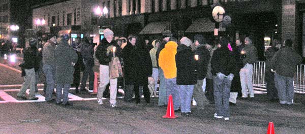 In this group (above), people came with lit candles and stood right in front of the entrance to Mechanics Hall.