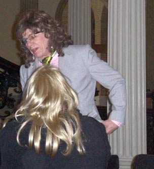 Cross-dressers & transsexuals converge on MA State House to lobby for radical "Transgender rights and hate crimes bill."A taste of things to come if bill passesApril 16, 2009 It was a taste of what you'll see a lot more of if the Orwellian "Transgender Rights and Hate Crimes" bill becomes law. On Tuesday, April 6, cross-dressers, transsexuals, and other "sexual minority" activists converged at the Massachusetts State House last for a "transgender lobby day." They were there to push the most radical bill ever seriously considered by the Massachusetts Legislature. And as usual with the homosexual lobby, the event was very well organized, full of emotion and propaganda - and very strange.