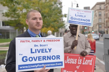 Across the state and especially on television Pastor Scott Lively is angering a lot of people and really pleasing others. We’ve never seen anything like it before.. It‘s so refreshing! The Massachusetts governor’s race is down to five candidates: Republican Charlie Baker (a major RINO in our opinion), Democrat Martha Coakley (a far-left ideologue), and three independents: businessman Evan Falchuk, venture capitalist Jeffrey McCormick and Pastor Scott Lively. The statewide debates usually sound like a Democratic primary – except for Scott Lively. Lively says what so many in the religious conservative movement wish their candidates would say. And he's well qualified to do it. Besides being a pastor with a PhD in theology, Lively is a constitutional law lawyer with Human Rights credentials from the United Nations and a former businessman. *** Gubernatorial TV debate - Sept. 30 Springfield, Mass:Watch video of that debate HERE.